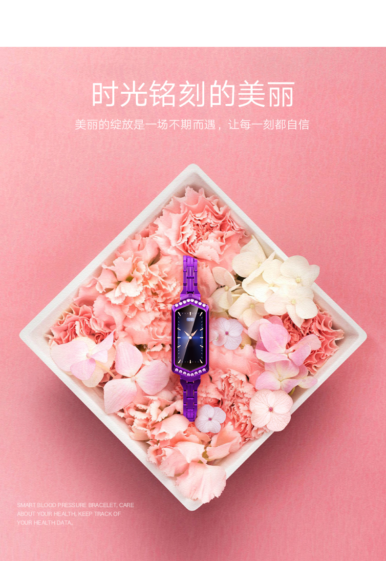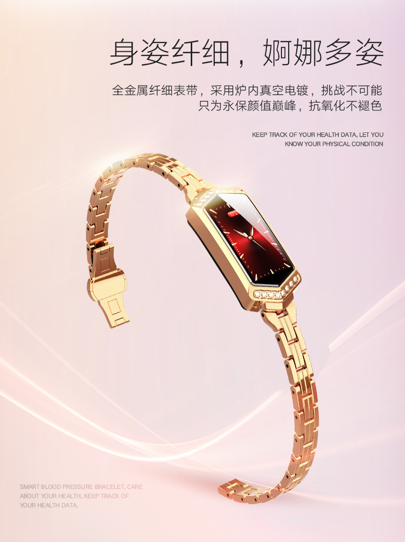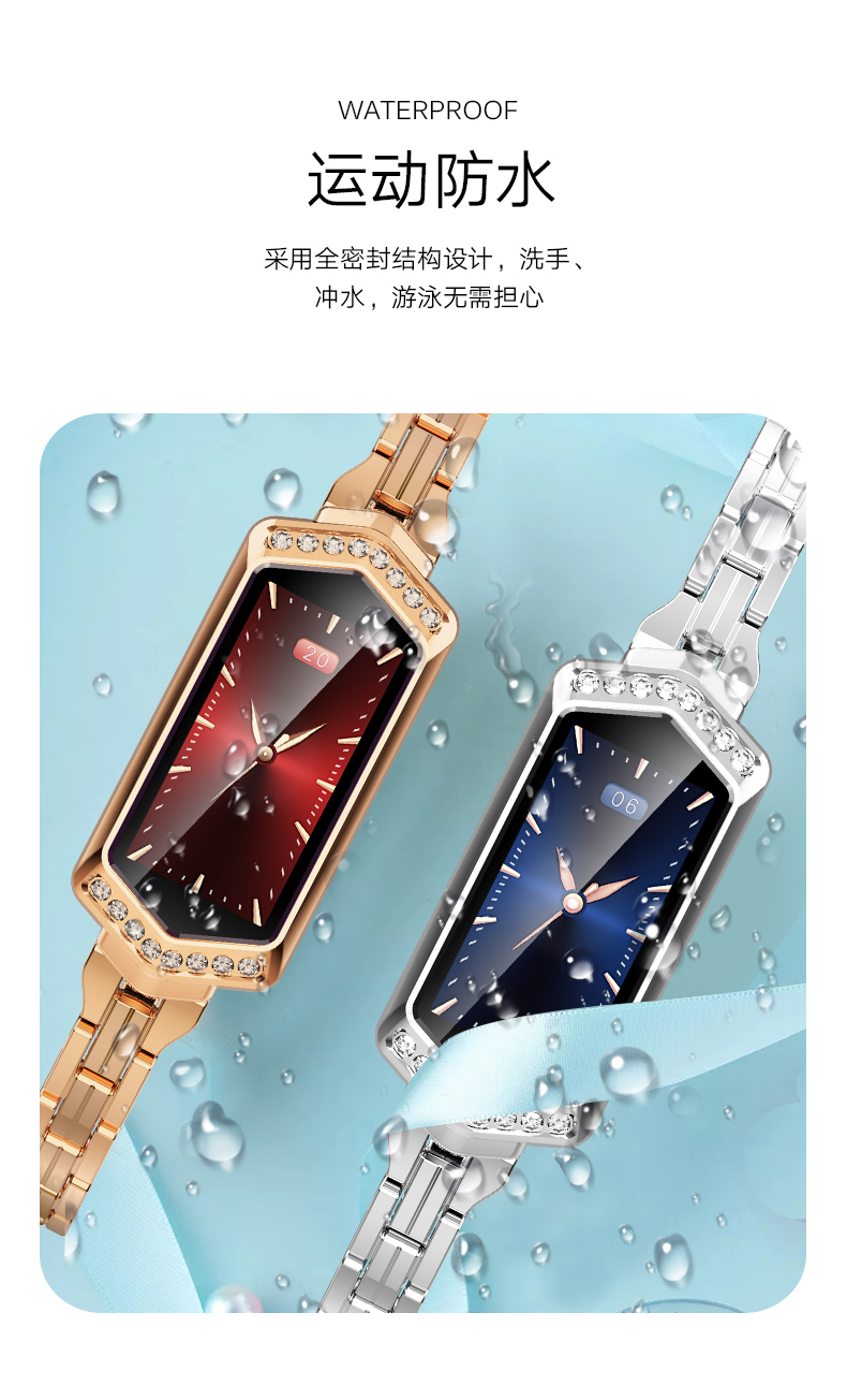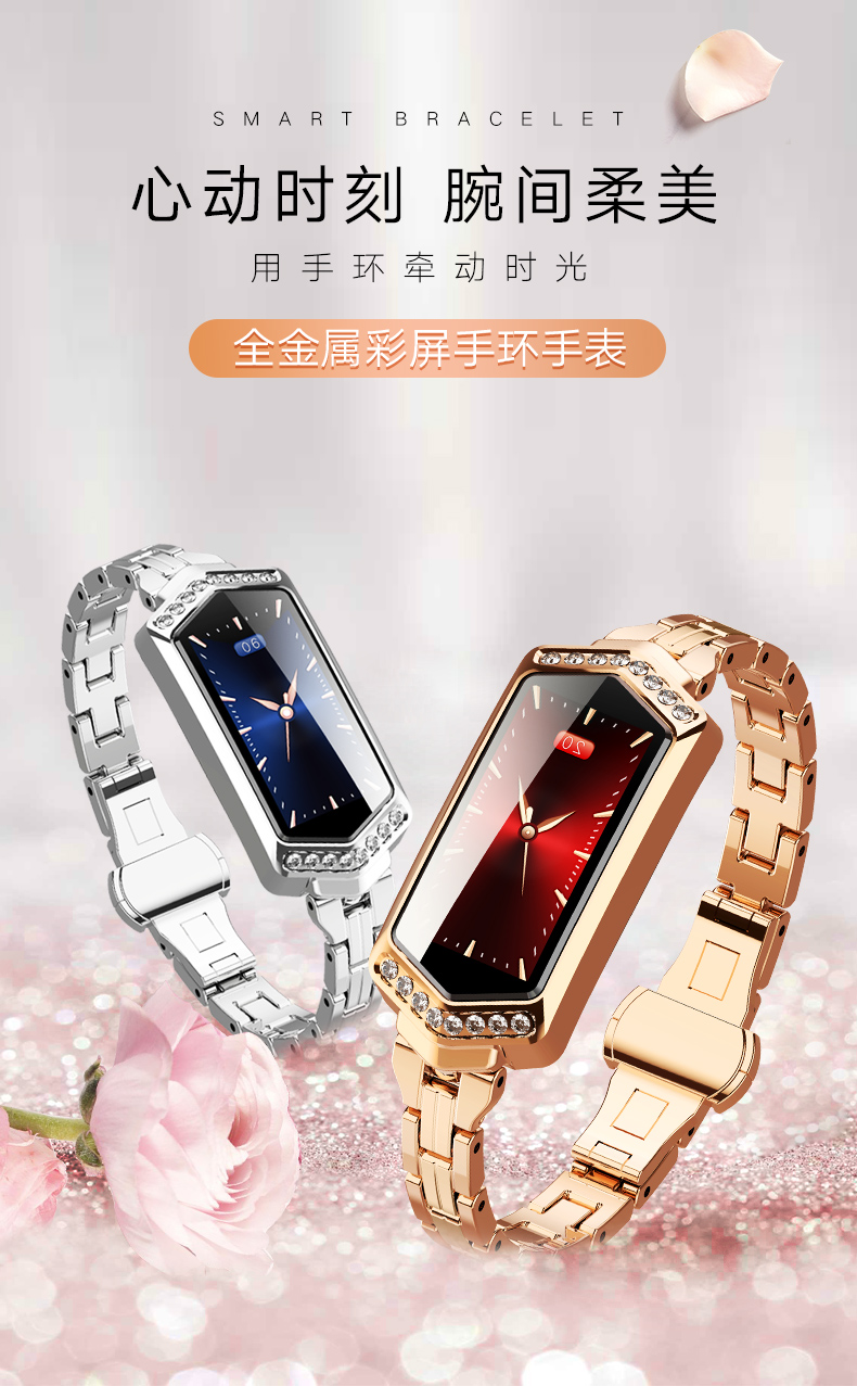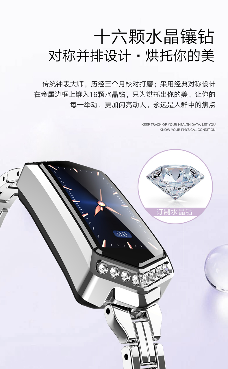 优禄全金属彩屏女士智能手环女性手表16颗水晶镶钻屏幕