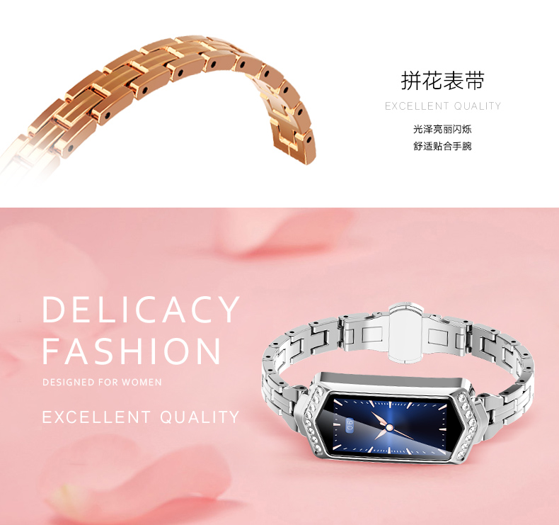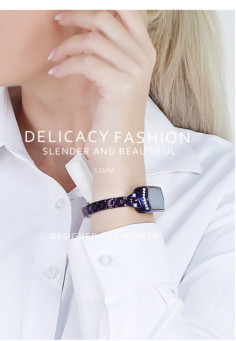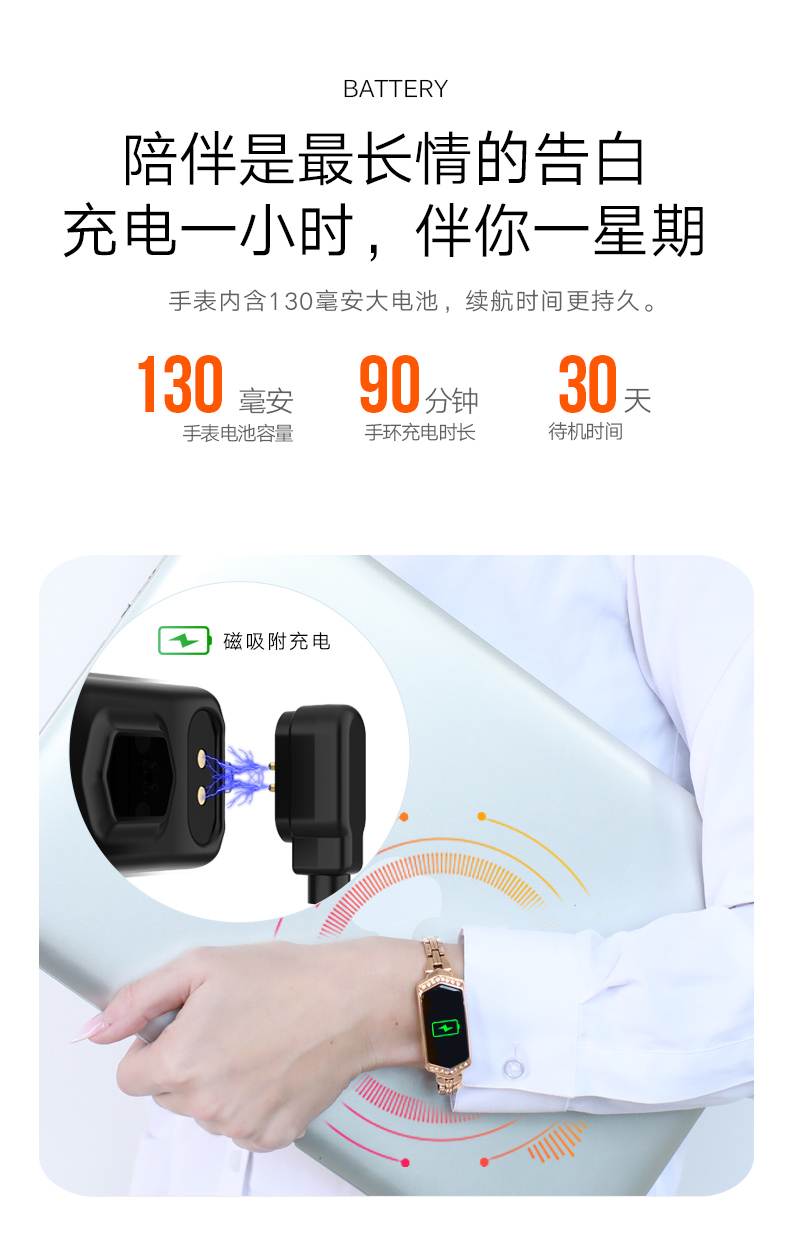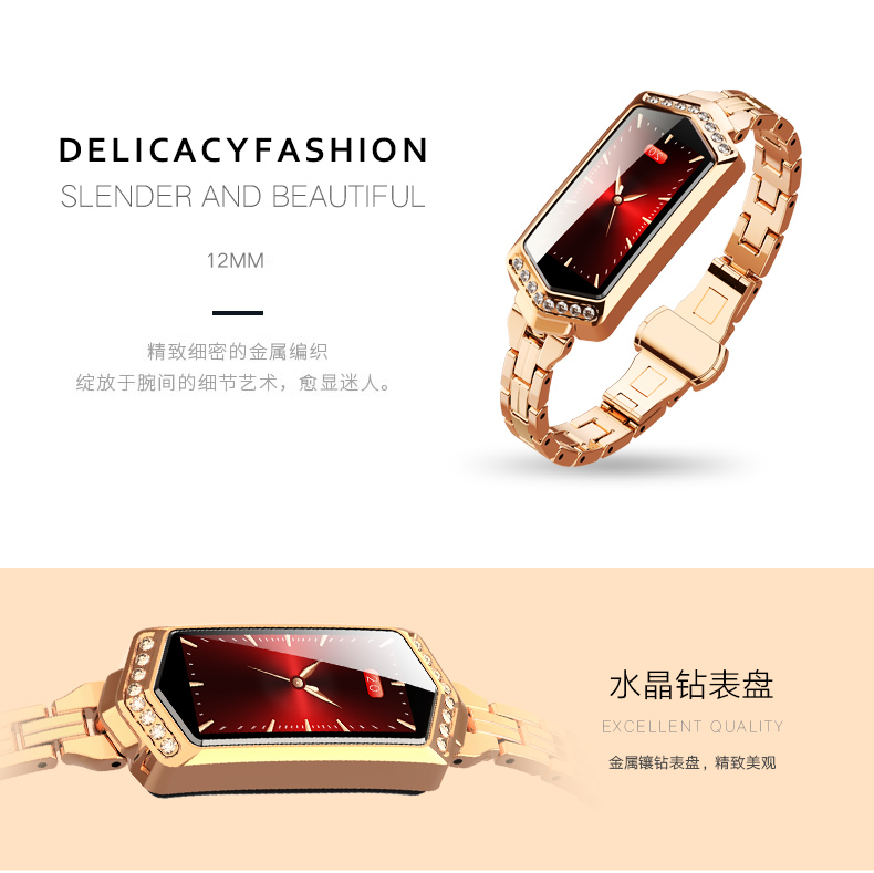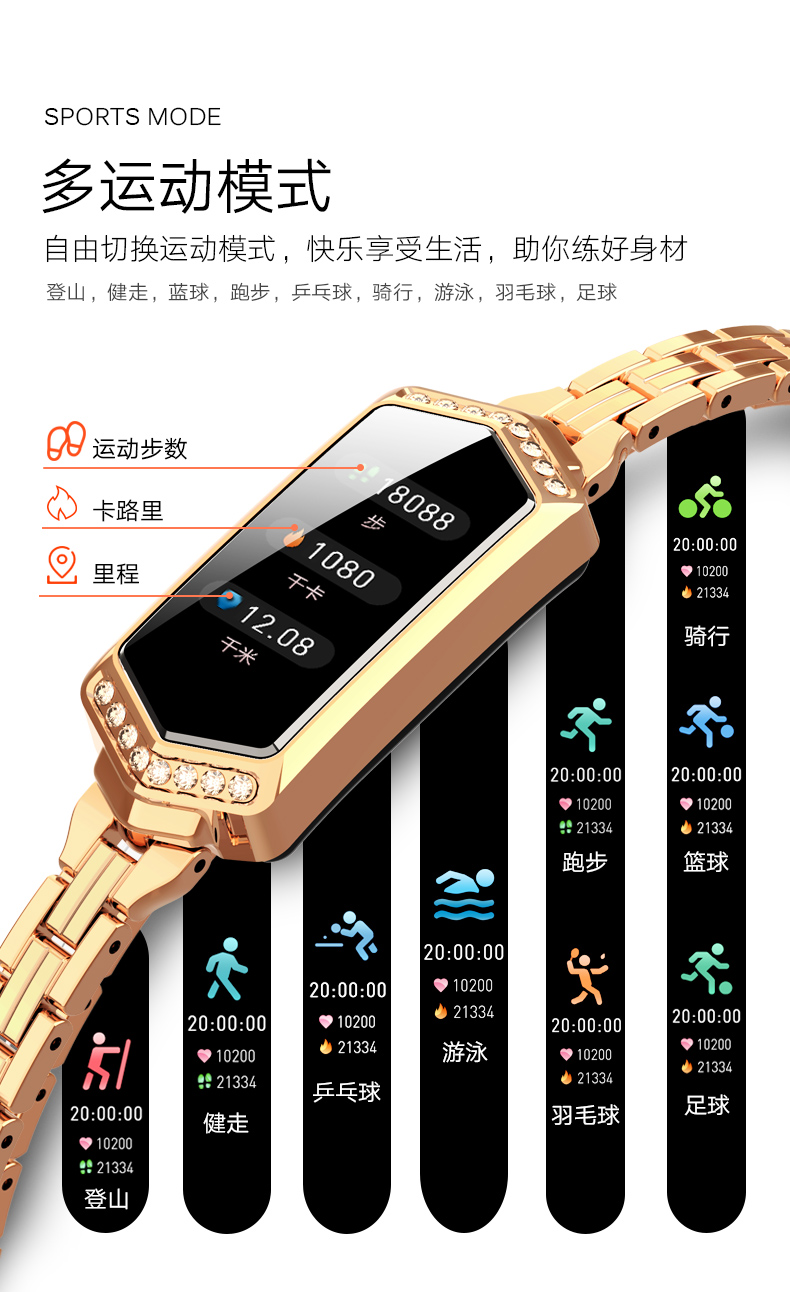 优禄全金属彩屏女士智能手环女性手表16颗水晶镶钻屏幕