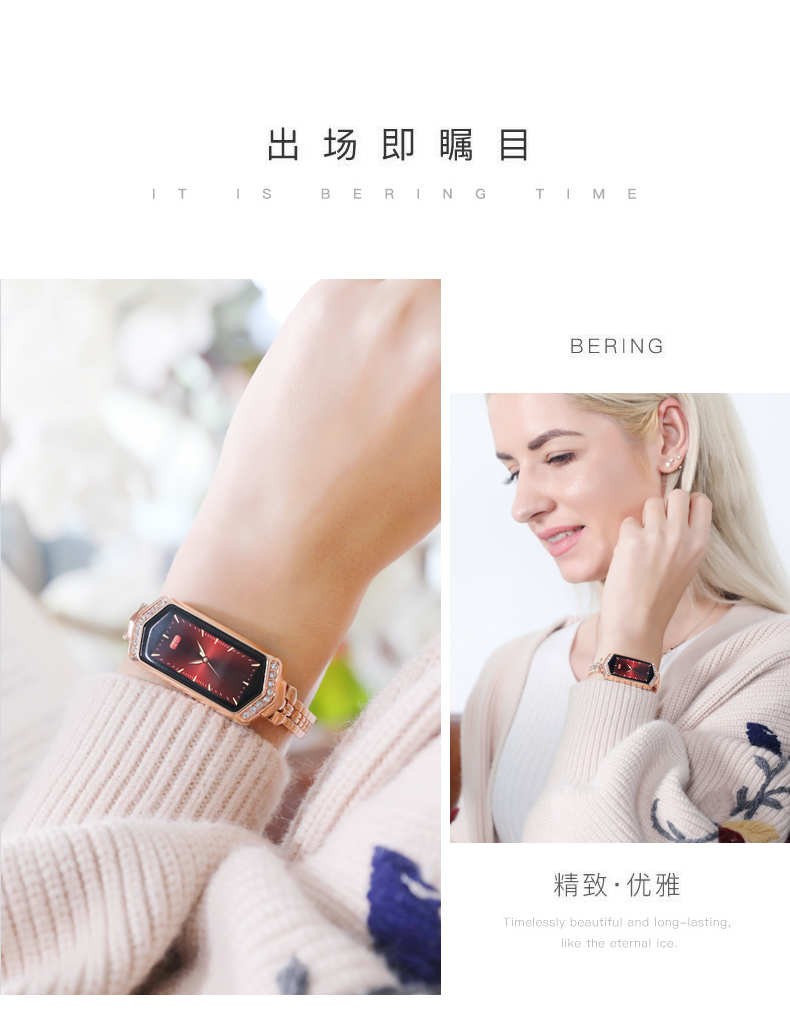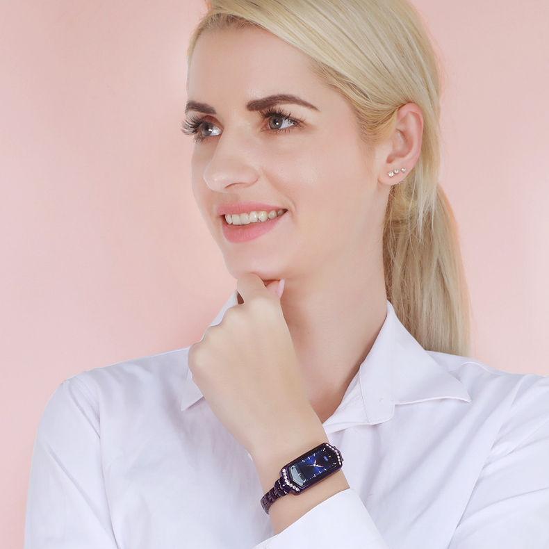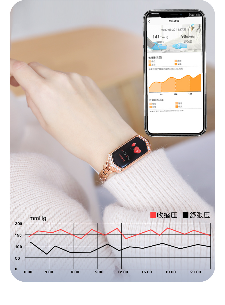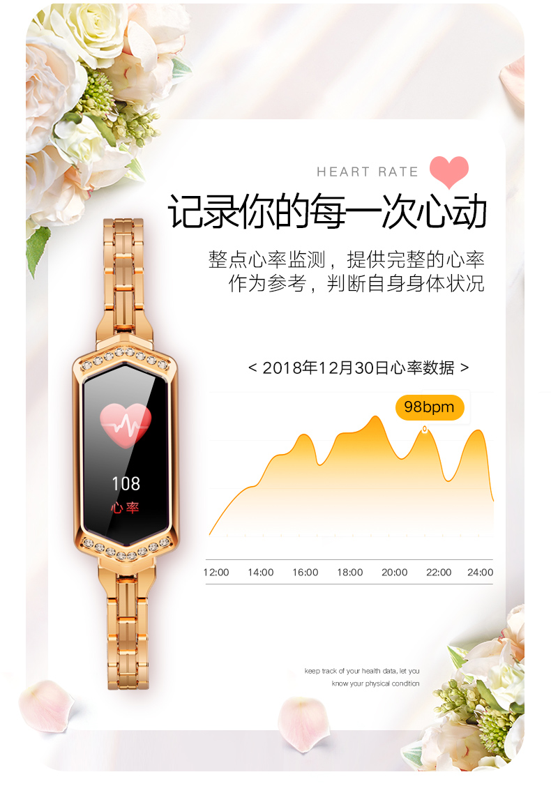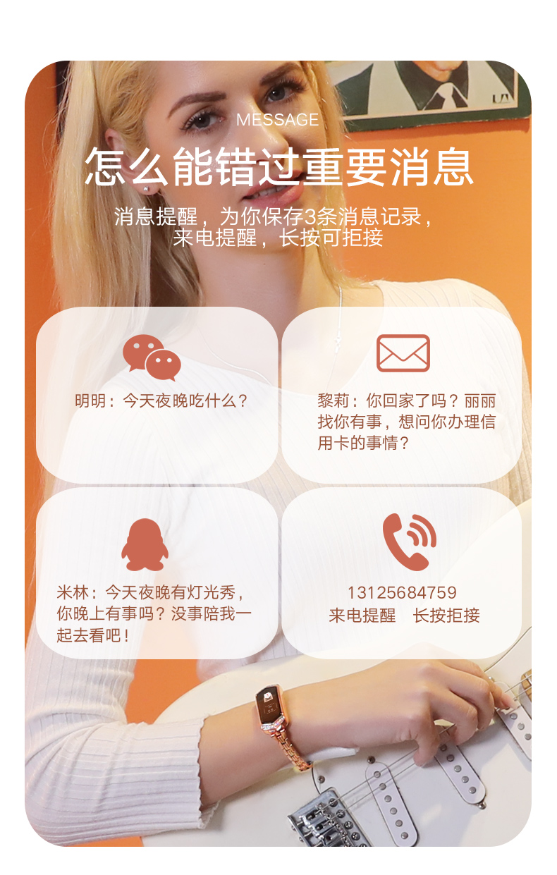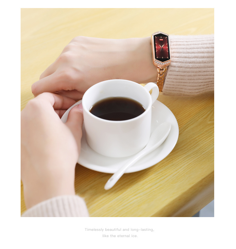 优禄全金属彩屏女士智能手环女性手表16颗水晶镶钻屏幕