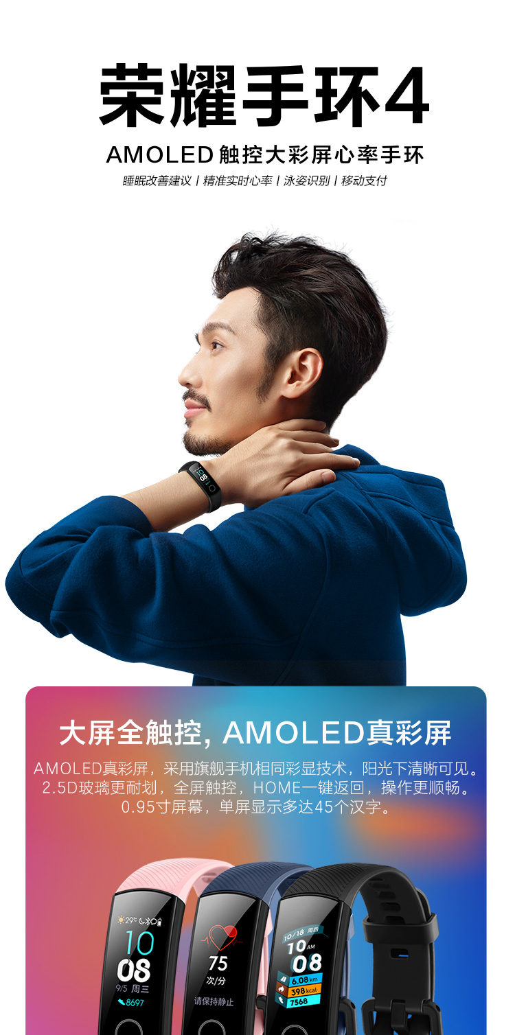 荣耀(honor)手环4 NFC版 陨石黑