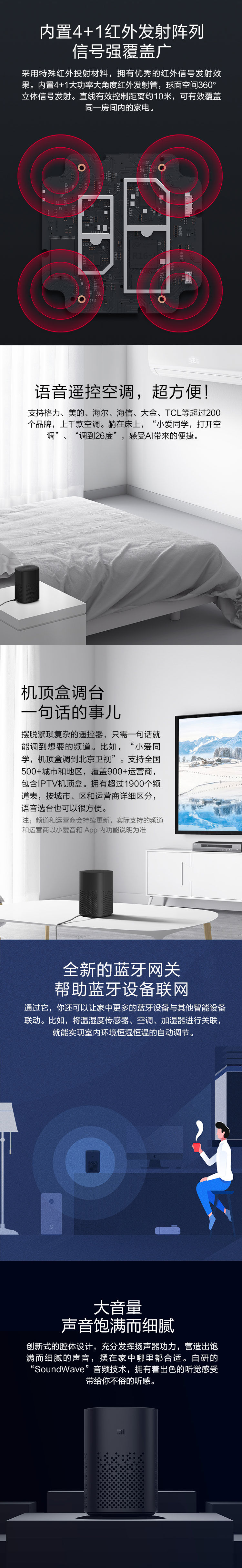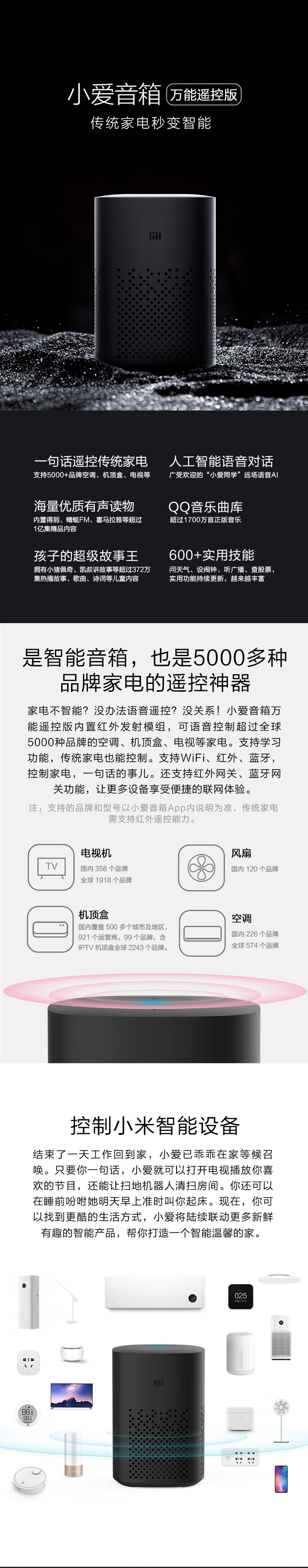 小米(MI)小爱音箱 万能遥控版小爱同学智能人工蓝牙WiFi音响 黑色
