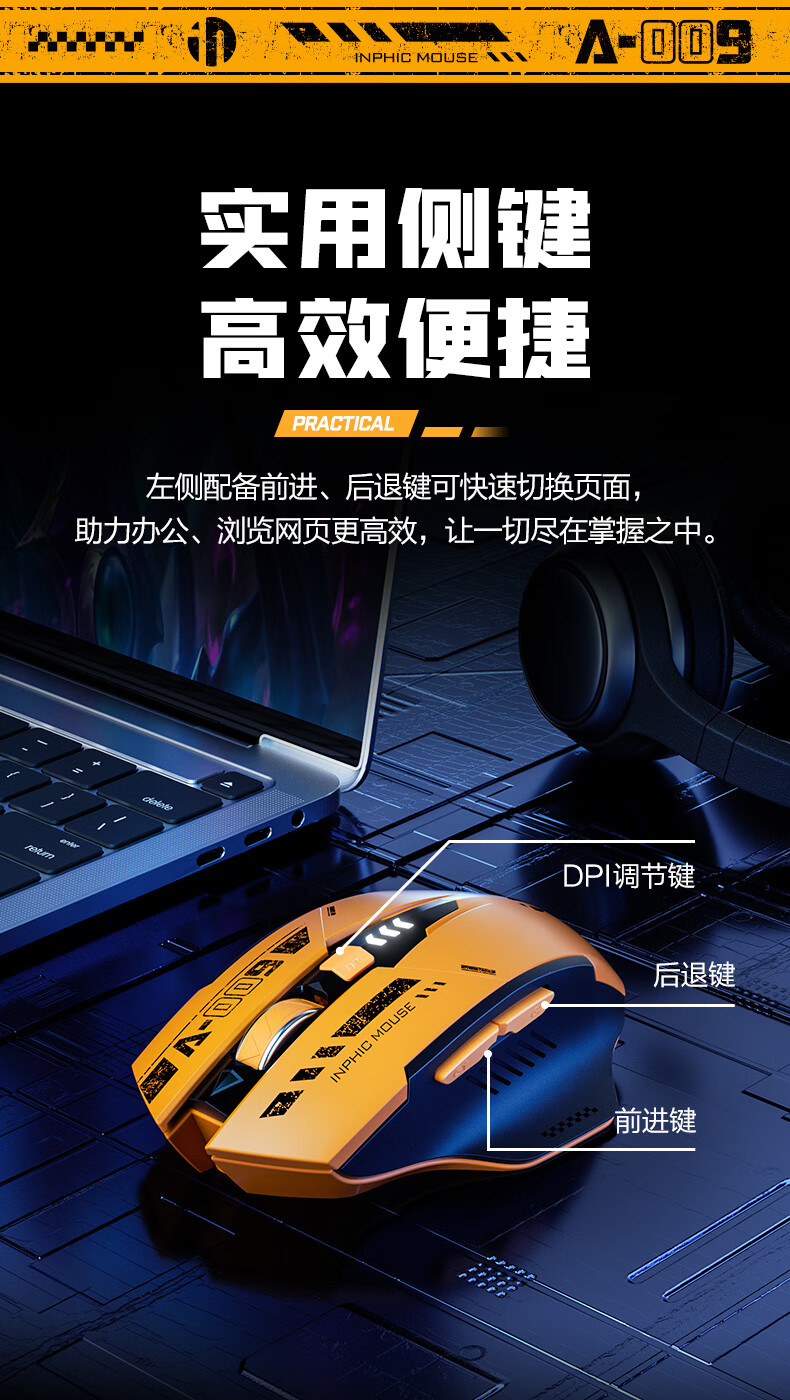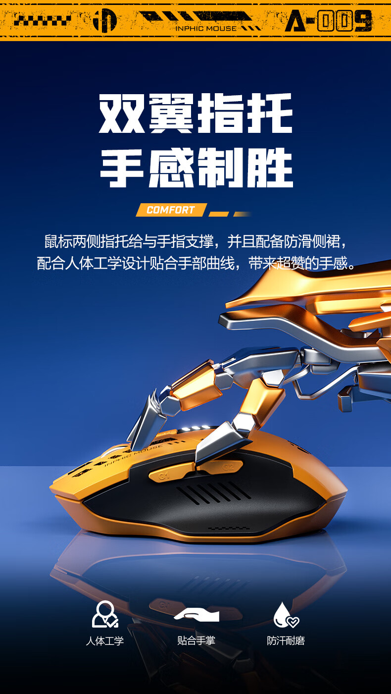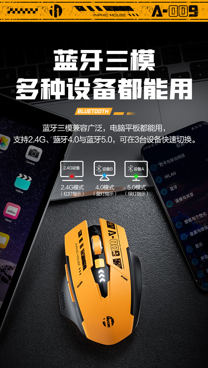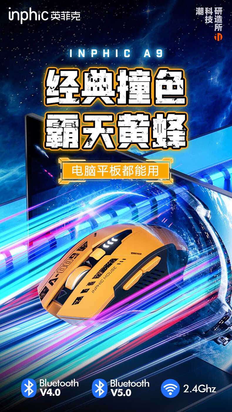 英菲克A9蓝牙三模无线鼠标霸天黄蜂