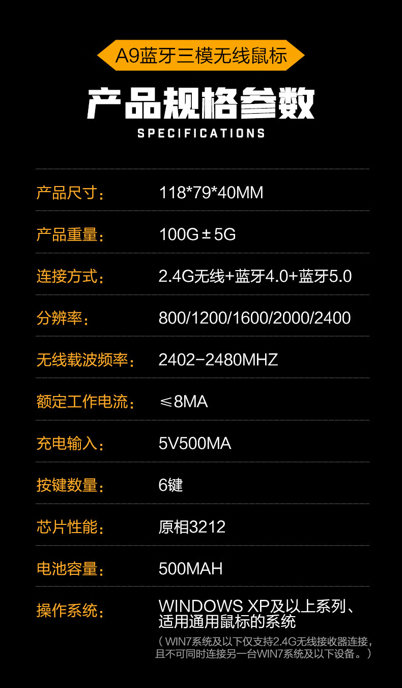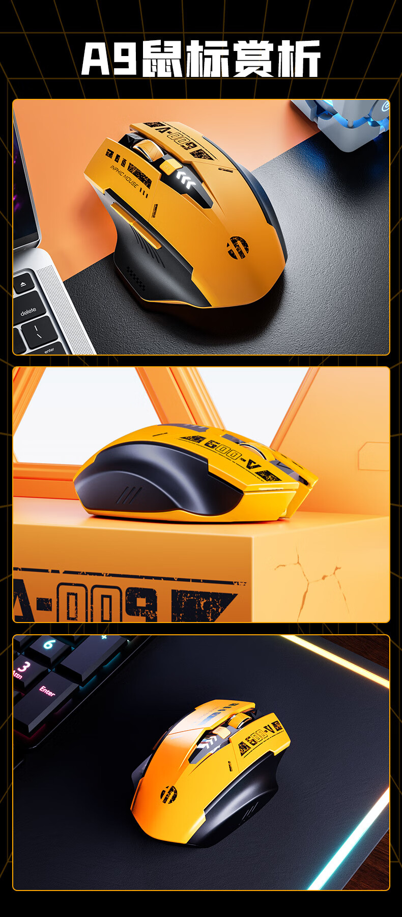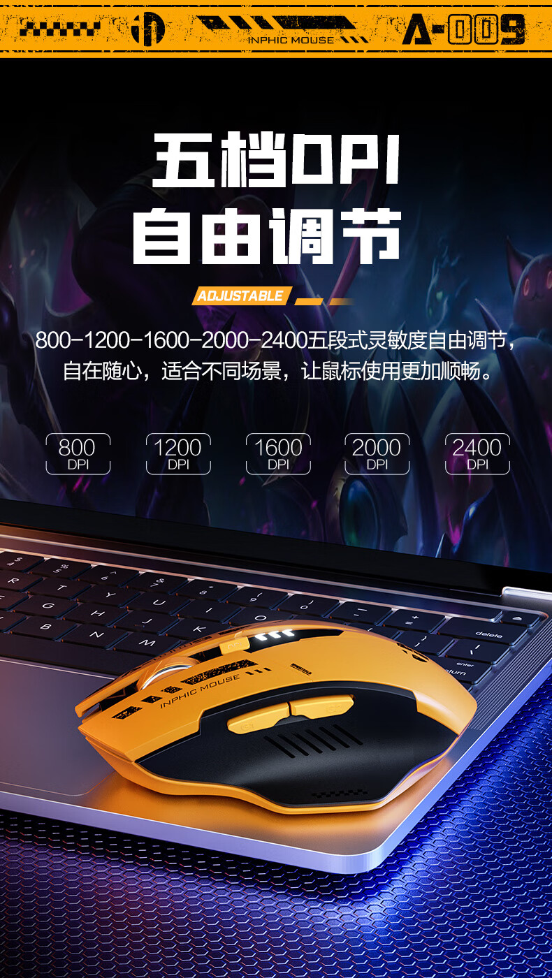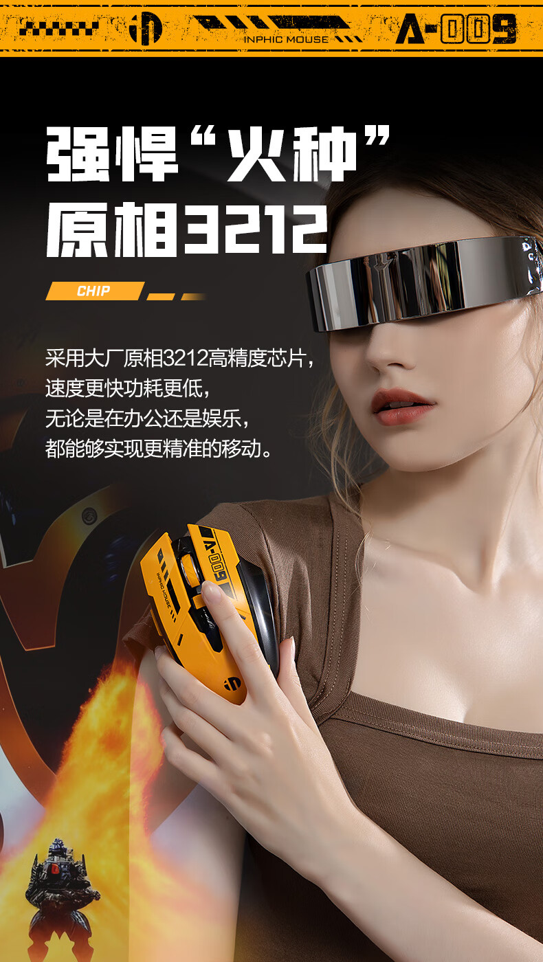 英菲克A9蓝牙三模无线鼠标霸天黄蜂