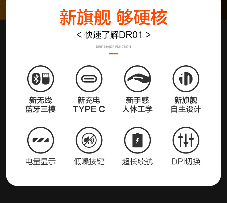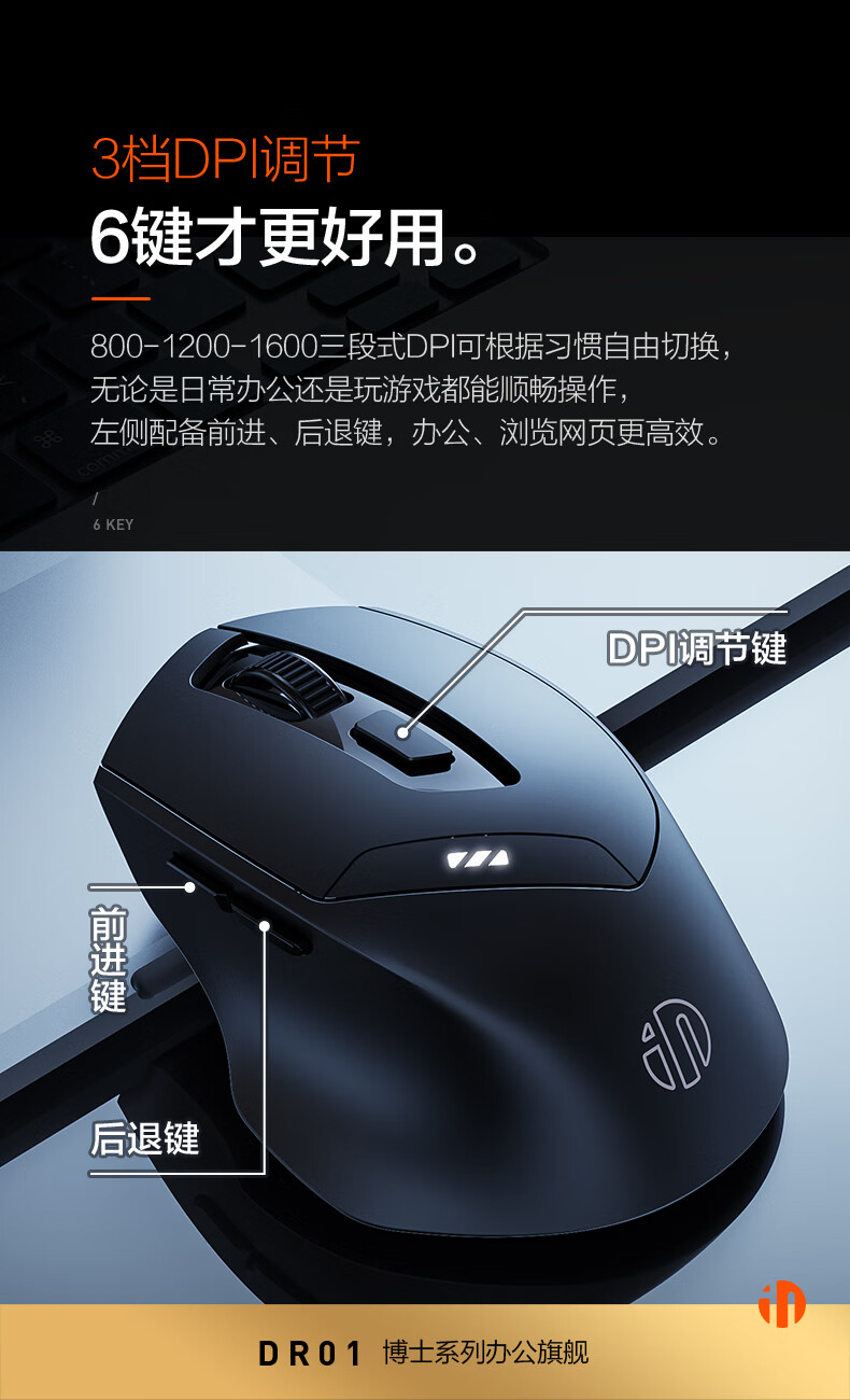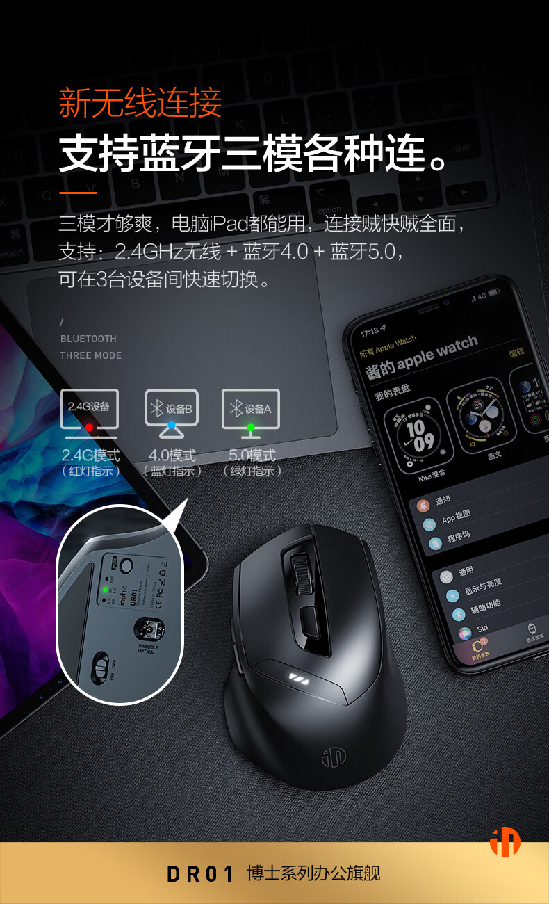 英菲克DR01无线蓝牙三模鼠标可充电人体工学舒适握感