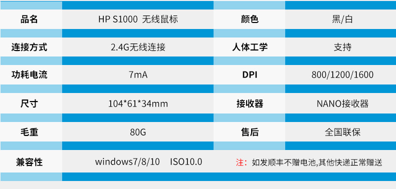 惠普(HP)S1000Plus无线鼠标办公鼠标黑色