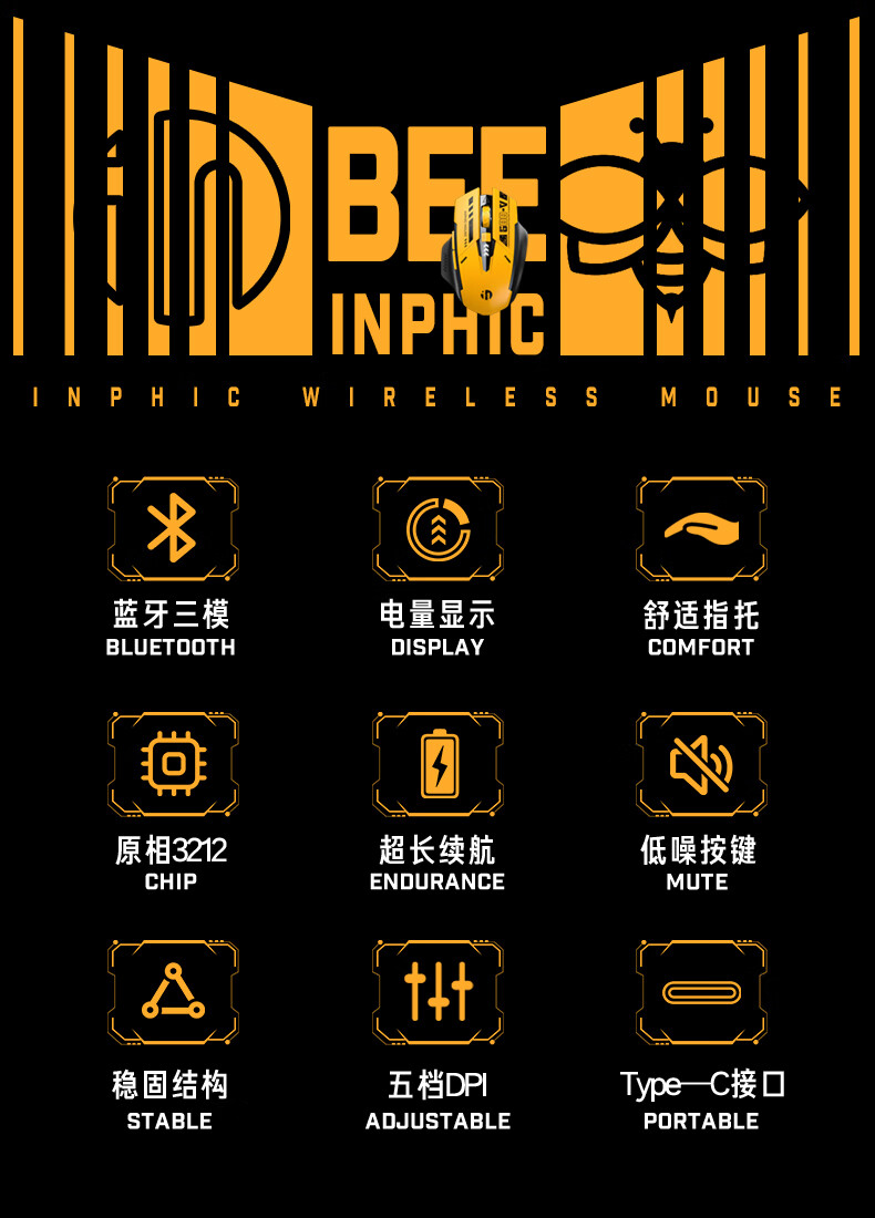 英菲克A9蓝牙三模无线鼠标霸天黄蜂